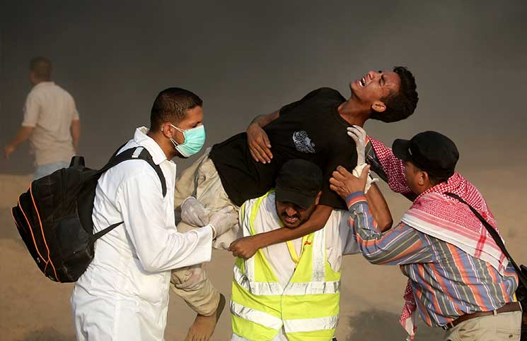 Selon des sources médicales à Gaza, 180 Palestiniens ont été blessés, dont un tiers par des tirs à balles réelles.