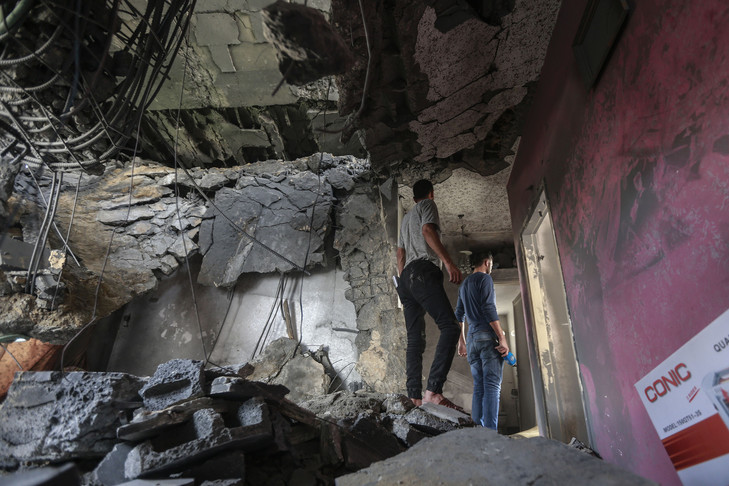 ![06 May 2019, Palestinian Territories, Beit Lahia: Palestinians inspect the damage at a building destroyed during Israeli airstrikes on Beit Lahia. Following the most severe escalation of violence between Palestinians and Israelis since the 2014 Gaza War, Hamas indicated on Sunday that the group, which rules the Gaza Strip, was prepared to arrange a new ceasefire with Israel. Photo: Mohammed Talatene/dpa (MaxPPP TagID: dpaphotosthree877264.jpg) [Photo via MaxPPP]](https://fr-archive.almanartv.com.lb/framework/includes/uploads/2019/05/manar-06568350015572398443.jpg)