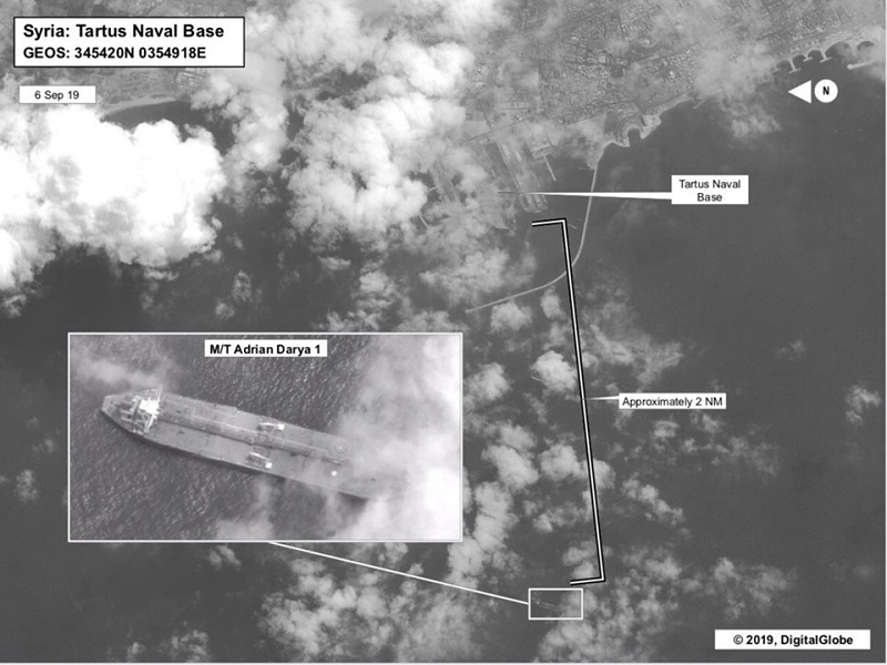 Le dimanche 8 septembre, le service de repérage maritime TankerTrackers a annoncé qu’Adrian Darya se trouvait au large de la côte syrienne de Tartous, sans toutefois avoir déchargé le pétrole.
