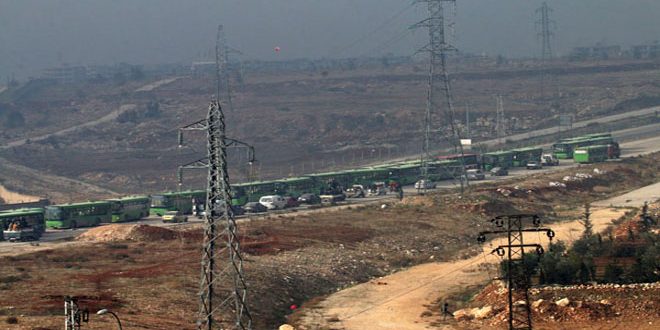 Le correspondant de Sana a souligné que 50 bus supplémentaires entreront dans les prochaines heures dans la dernière enclave de terroristes, parallèlement à l’arrivée d’un nombre de bus qui transporteront des blessés et des civils de Foua et Kafraya à la ville d’Alep.