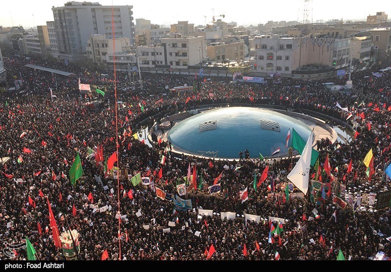 Depuis le matin, la foule alterne entre moments de recueillement et de tristesse intense marqués par de profonds silence à l’écoute et d’élégies interprétées par des célèbres chanteurs religieux, et explosion de colère aux cris de « Mort à l’Amérique », « Mort à l’Amérique ».