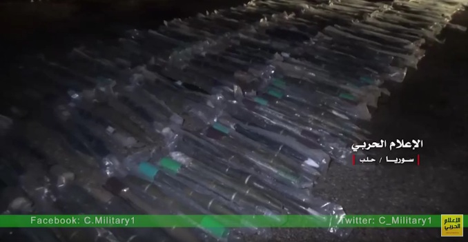 Media de guerre, instance médiatique de la résistance en Syrie a posté sur son compte Facebook une nouvelle vidéo qui filme les énormes quantités d’armements et de munitions abandonnée par les rebelles dans les quartiers est d’Alep.