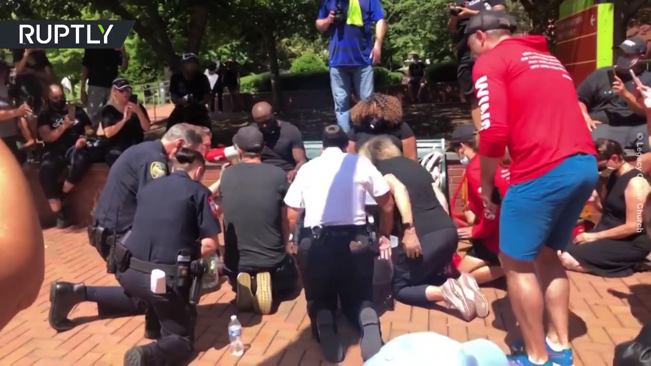 Cette cérémonie, en marge d’un rassemblement pour George Floyd, le samedi 6 juin selon l’agence russe Sputnik, avait pour but de demander pardon à la communauté afro-américaine.