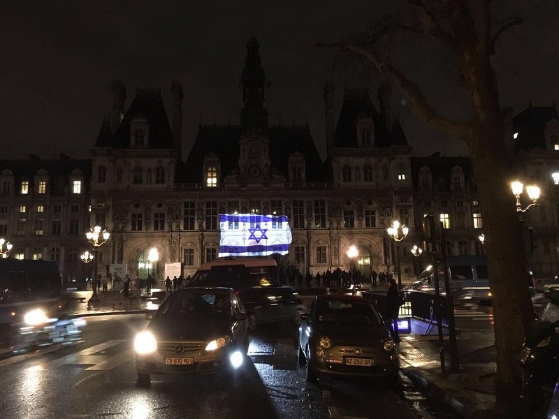 Sans aucun respect pour les souffrances du peuple palestinien sous occupation depuis plus de 70 ans, l’Hôtel de ville de Paris a projeté les couleurs du drapeau israélien sur sa façade, dans la soirée du mardi 10 janvier