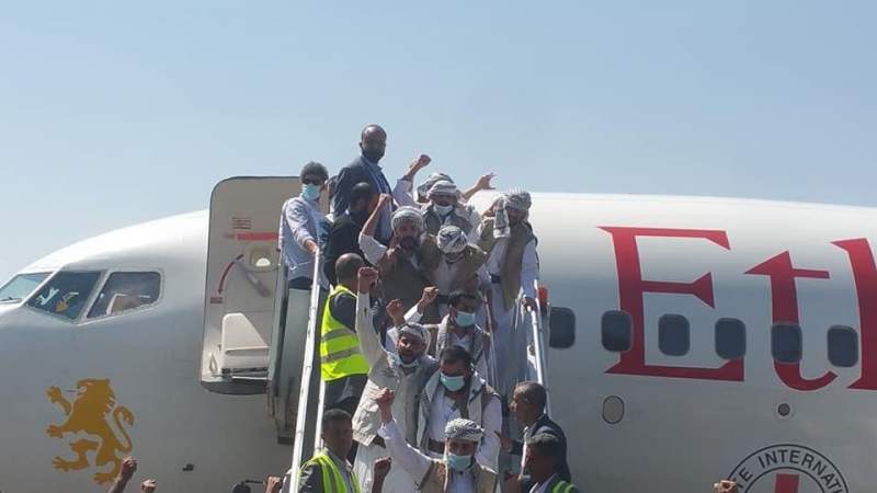 Selon Al-Masirah, la télévision d’Ansarullah, une délégation officielle du bureau du chef d’Ansarullah Abdel Malek Badreddine al-Houthi faisait partie de l’accueil populaire réservé aux détenus à l’aéroport de Sanaa. Dont le membre du bureau politique Mohamad Ali Al-Houthi et un certain nombre de ministres du gouvernement de Sanaa.