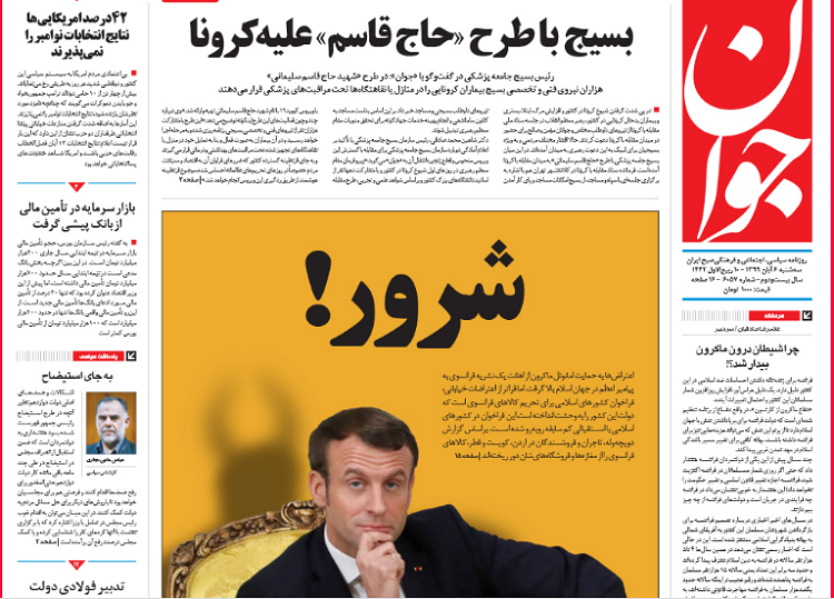 Le quotidien Javan a titré en une « Le Mal » sur une photo de M. Macron, souriant.
