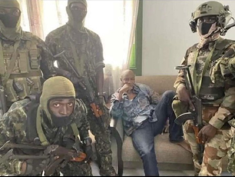 En effet, le média L’œil d’Afrique a diffusé sur Twitter des photos montrant le Président entouré de militaires du Groupement des forces spéciales (GPS) dirigé par le lieutenant-colonel Mamady Doumbouya.