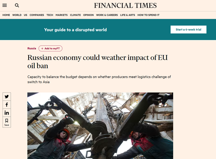 Selon le journal américain Financial Times, l’économie russe est en mesure de faire face à un éventuel rejet par l’Union européenne du pétrole russe en remplaçant cette dernière par les pays asiatiques.