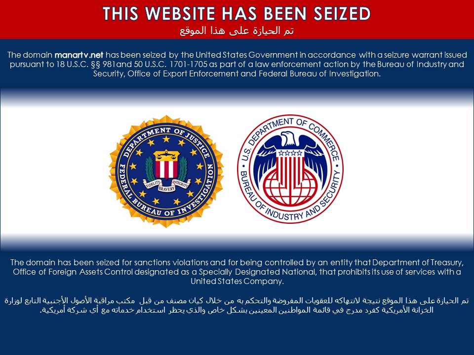 Sur les 13 sites web saisis, cinq etaient enregistrés auprès d’une société basée en Virginie, le Public Interest Registry, qui gère le domaine « .org ». Il s’agit des sites moqawama.org, almanarnews.org, manarnews.org, almanar-tv.org et alshahid.org. Les huit autres domaines web sont enregistrés auprès de Verisign Inc, un fournisseur mondial de services d’enregistrement de noms de domaine et d’infrastructures Internet basé en Virginie. Ces sites sont : manartv.net, manarnews.net, almanar-tv.com, almanar-tv.net, alidaamouch.com, Ibrahim-alsayed.net, alemdad.net et naimkassem.net.