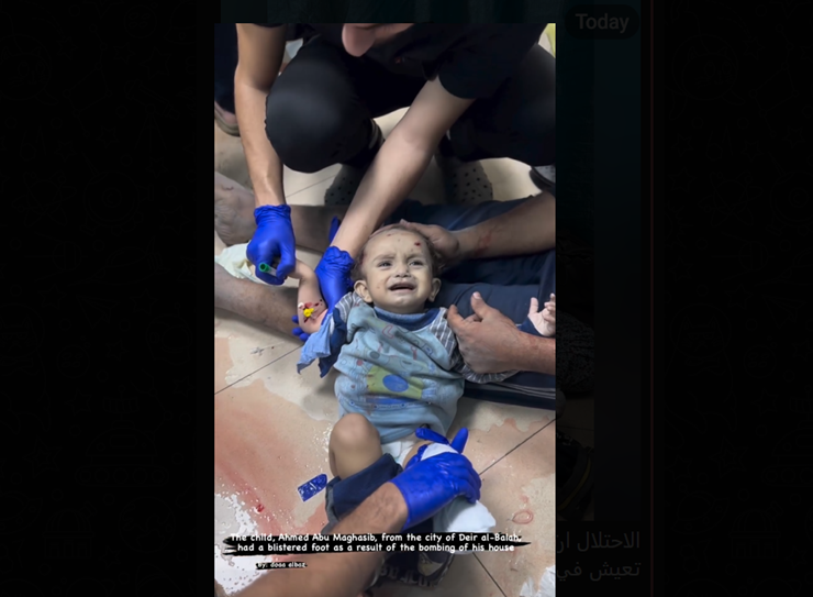 Une mère se lamentait sur le sort de sa petite fille de 3 ans amputée de la jambe dans un raid sur le maison à Deir al-Balah.
