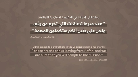Les Brigades Al-Qassam ont déclaré, dans une vidéo de 48 secondes intitulée : » Un message à nos frères de la Résistance islamique libanaise: Ce sont des véhicules blindés Gallant quittant Rafah, et nous sommes certains que vous terminerez la mission ».