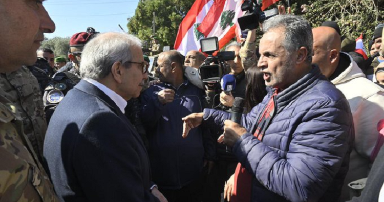 Un sit-in d’habitants de plusieurs villages frontaliers détruits par l’armée d’occupation israélienne a été organisé devant la caserne Benoit Barakat de Tyr lors de l’arrivée de Salam.