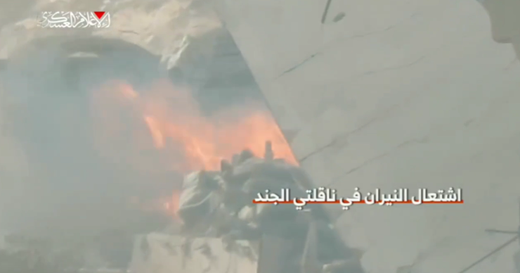 Selon Quds News Network, un deuxième combattant faisait exploser presque simultanement le deuxième véhicule blindé de transport de troupes, stationné à quelques mètres du premier.
