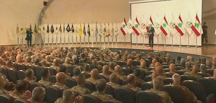 Dans un discours prononcé jeudi au ministère de la Défense à l’occasion de la Journée de l’Armée, le président Aoun a déclaré : « Il est de mon devoir et du devoir de tous les partis politiques, à travers le Conseil des ministres, le Conseil suprême de la défense, le Parlement et toutes les forces politiques, de saisir cette opportunité historique et, sans hésitation, de faire pression pour affirmer la possession exclusive d’armes par l’armée et les forces de sécurité, exclusivement, et sur tout le territoire libanais, aujourd’hui plutôt que demain. »