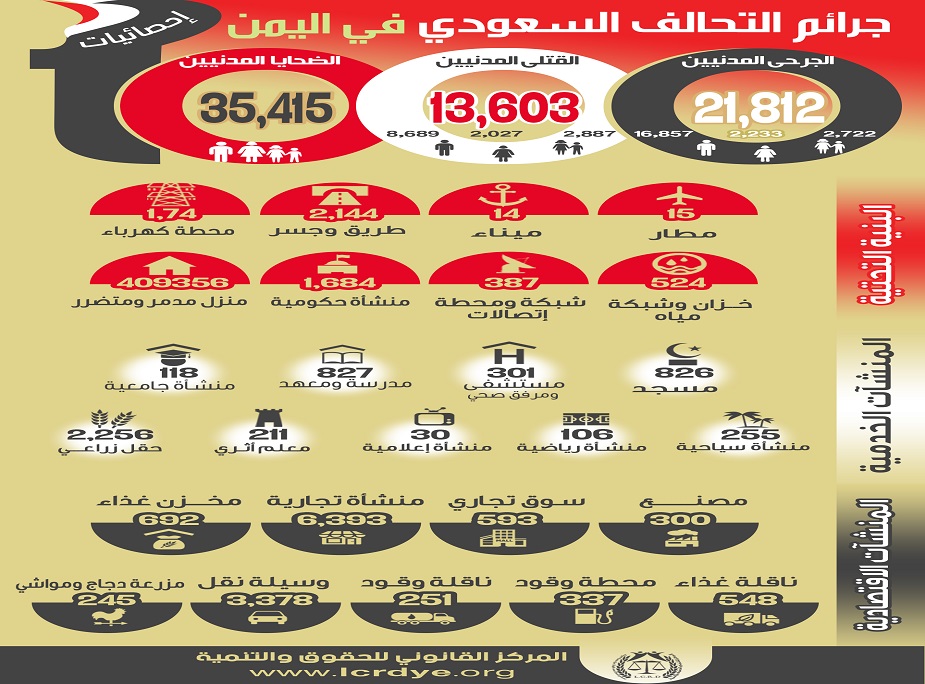 Depuis mars 2015, 35415 yéménites ont été tués et blessés par les bombardements saoudo-US. Selon les statistiques publiées lundi soir par le Centre juridique pour les droits et le développement, le nombre total des martyrs a atteint 13 603 civils. Il s’agit de 2.887 enfants, 2.027 femmes, et 8.689 hommes.