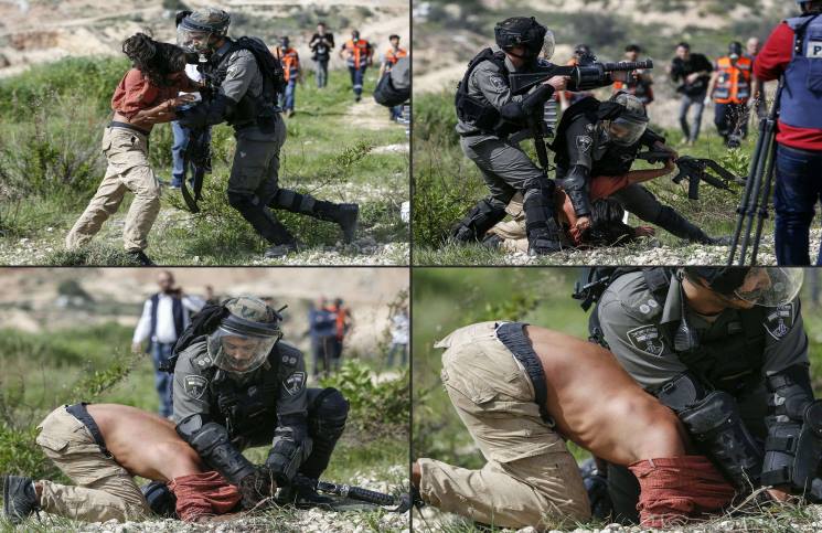 Le militant, dont l’identité n’a pas été dévoilé, brandissait un drapeau palestinien au moment où il a été violemment battu puis détenu après avoir résisté aux soldats d’occupation.