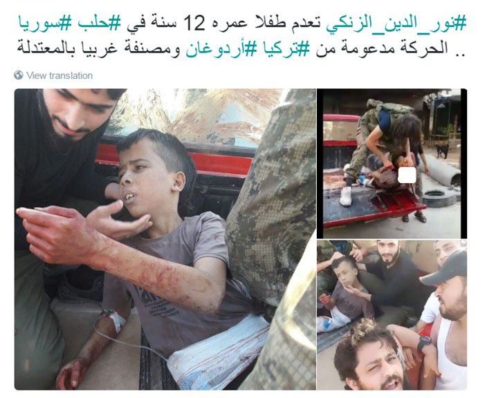 La milice syrienne Mouvement Noureddine Zenki que les Etats-Unis classe parmi les groupuscules syriens modérés a commis une nouvelle horreur qu’il a pris soin de ne pas la médiatiser.